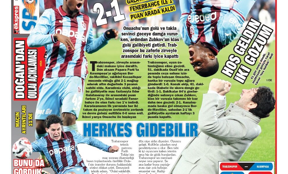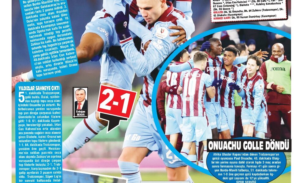 Öte yandan Trabzon’da yayın yapan yerel gazeteler de Kasımpaşa karşısında alınan galibiyeti manşetlerine farklı başlıklarla taşıdı. Yerel basında öne çıkan başlıklar şu şekilde