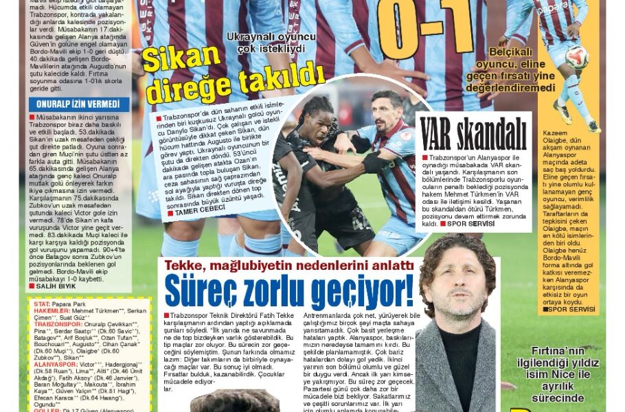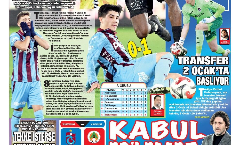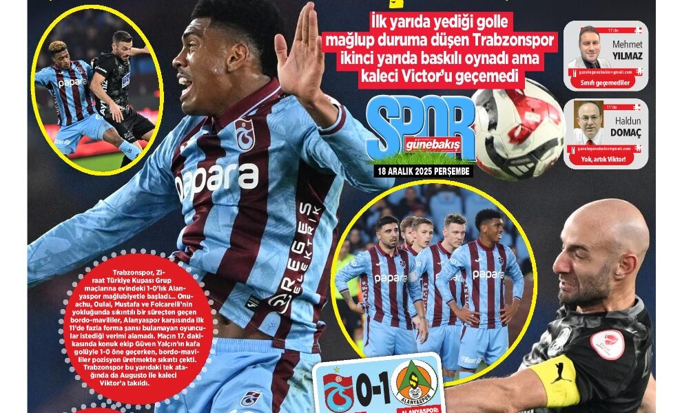 Öte yandan Trabzon’da yayın yapan yerel gazeteler de Alanyaspor mağlubiyetini manşetlerine farklı başlıklarla taşıdı. Yerel basında öne çıkan başlıklar şu şekilde:
