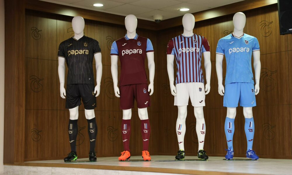• Trabzonspor Kulübü Başkanı Ertuğrul Doğan ve Papara CEO’su Emre Kenci’nin katılımıyla Papara Park’ta gerçekleştirilen basın toplantısında, Trabzonspor’un yeni sezonda giyeceği ve Papara logosunu göğsünde taşıyacağı 4 farklı forma tanıtıldı. Fotoğraf: Trab