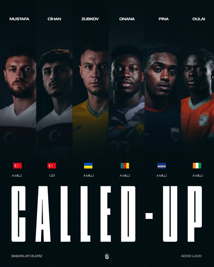 Öte yandan Trabzonspor Kulübü de milli takımlara çağrılan oyuncularının yer aldığı bir paylaşım yaparak başarı dileklerinde bulundu.