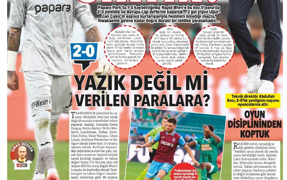 Öte yandan Trabzon’da yayın yapan yerel basın da Trabzonspor’un UEFA Avrupa Ligi’nden elenmesini manşetlerine farklı başlıklarla taşıdı.