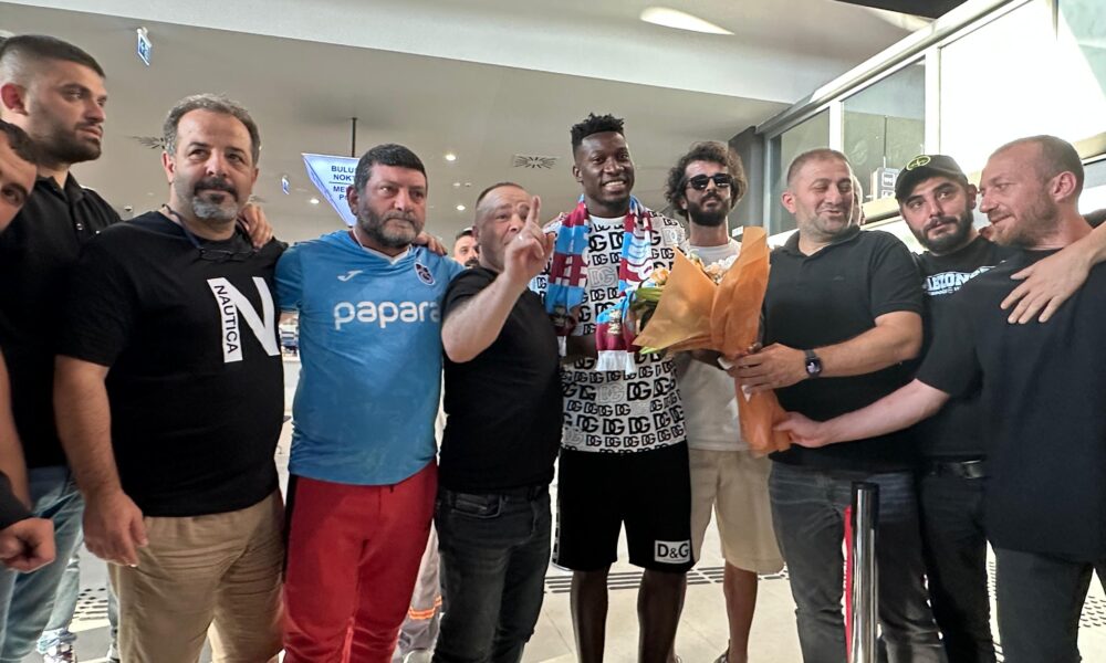 Trabzonspor’un, Manchester United’dan kadrosuna kattığı Andre Onana, özel uçakla Trabzon’a geldi. Uğurcan Çakır’ın Galatasaray’a transferi sonrası kaleyi devralacak olan 29 yaşındaki kaleci, kulüp tarafından tahsis edilen özel uçakla saat 17.00 sularında Trabzon Havalimanı’na iniş yaptı. Bordo-mavili taraftarların büyük ilgi gösterdiği Kamerunlu eldiven, havalimanında coşkuyla karşılandı. Bordo-mavili taraftarlar, deneyimli kaleci için tezahüratlarda bulundu. Taraftarların sevgi gösterisine el sallayarak karşılık veren Onana, Trabzonspor atkısını boynuna takarak apron çıkışında basın mensuplarına poz verdi. Ardından kendisini bekleyen kulüp aracına binerek konaklayacağı otele doğru hareket etti.