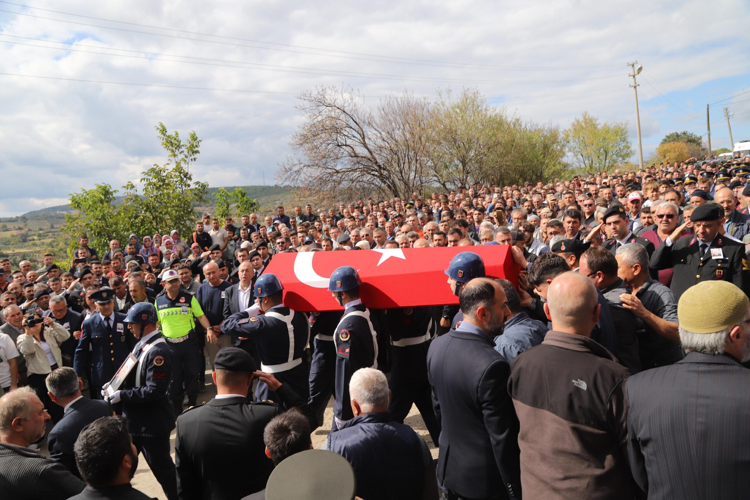 • Sakarya'nın Akyazı ilçesinde otomobille çarpışan sivil jandarma aracında hayatını kaybeden Jandarma Astsubay Kıdemli Çavuş Hakkı Eryılmaz, memleketi Manisa'nın Akhisar ilçesinde defnedildi.Fotoğraf:Manisa,(DHA)