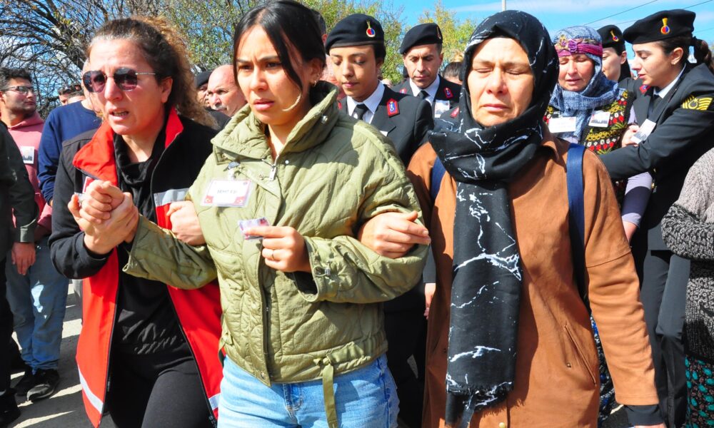 • Hayatını kaybeden Jandarma Astsubay Kıdemli Çavuş Hakkı Eryılmaz, memleketi Manisa'nın Akhisar ilçesinde defnedildi.Annesi Zeliha Eryılmaz (Ortada).Fotoğraf:Manisa,(DHA)