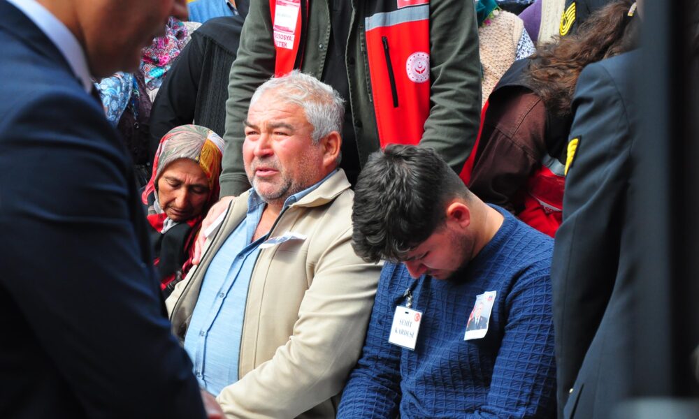 • Hayatını kaybeden Jandarma Astsubay Kıdemli Çavuş Hakkı Eryılmaz, memleketi Manisa'nın Akhisar ilçesinde defnedildi.Babası Mehmet Eryılmaz (Ortada).Kardeşi Cihan Eryılmaz (Sağda). Fotoğraf:Manisa,(DHA)