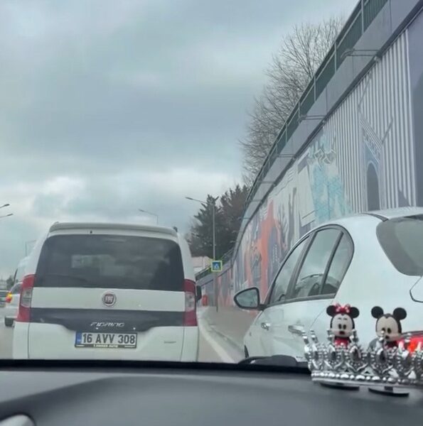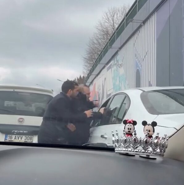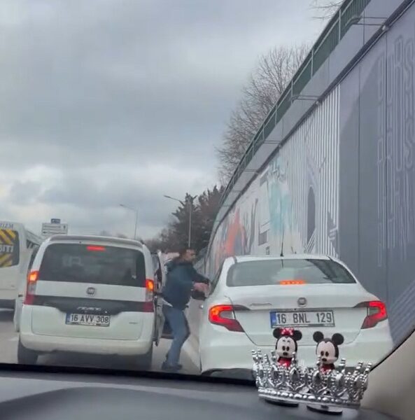 Olay, Osmangazi ilçesi Merinos Kavşağında meydana geldi. 16 BNL 129 plakalı otomobil ile 16 AVV 308 plakalı hafif ticari aracın sürücüleri arasında yol verme nedeniyle tartışma çıktı. Sürücü, hafif ticari aracı ile otomobilin önünü kesti, ardından aşağı inip yanındaki 2 kişi ile otomobil sürücüne yöneldi. Otomobil sürücüsünün camını açması ile 2 kişi, araç içine doğru yumruk savurdu. O anlar, diğer sürücüler tarafından kaydedildi.