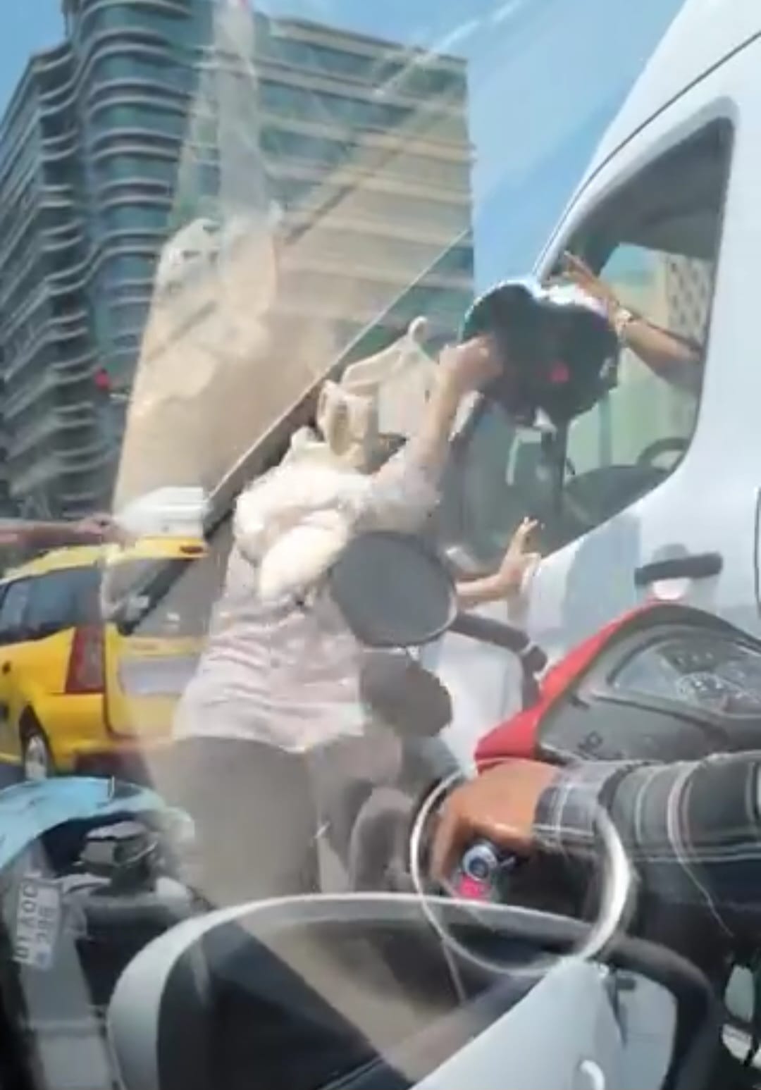 Olay, Seyhan ilçesi Sabancı Camii Kavşağı’nda meydana geldi. Henüz kimliği saptanamayan kadın motosiklet sürücüsünün, trafikte kendini sıkıştırdığını iddia ettiği kamyonet şoförü, kırmızı ışık yanınca durdu. Motosikletten inen sürücü, eline aldığı kaskıyla, kamyon şoförüne vurmaya çalıştı. Çığlık atıp tepki gösteren kadın, daha sonra motosikletine binerek, uzaklaştı. O anlar bir başka sürücü tarafından cep telefonuyla görüntülendi.