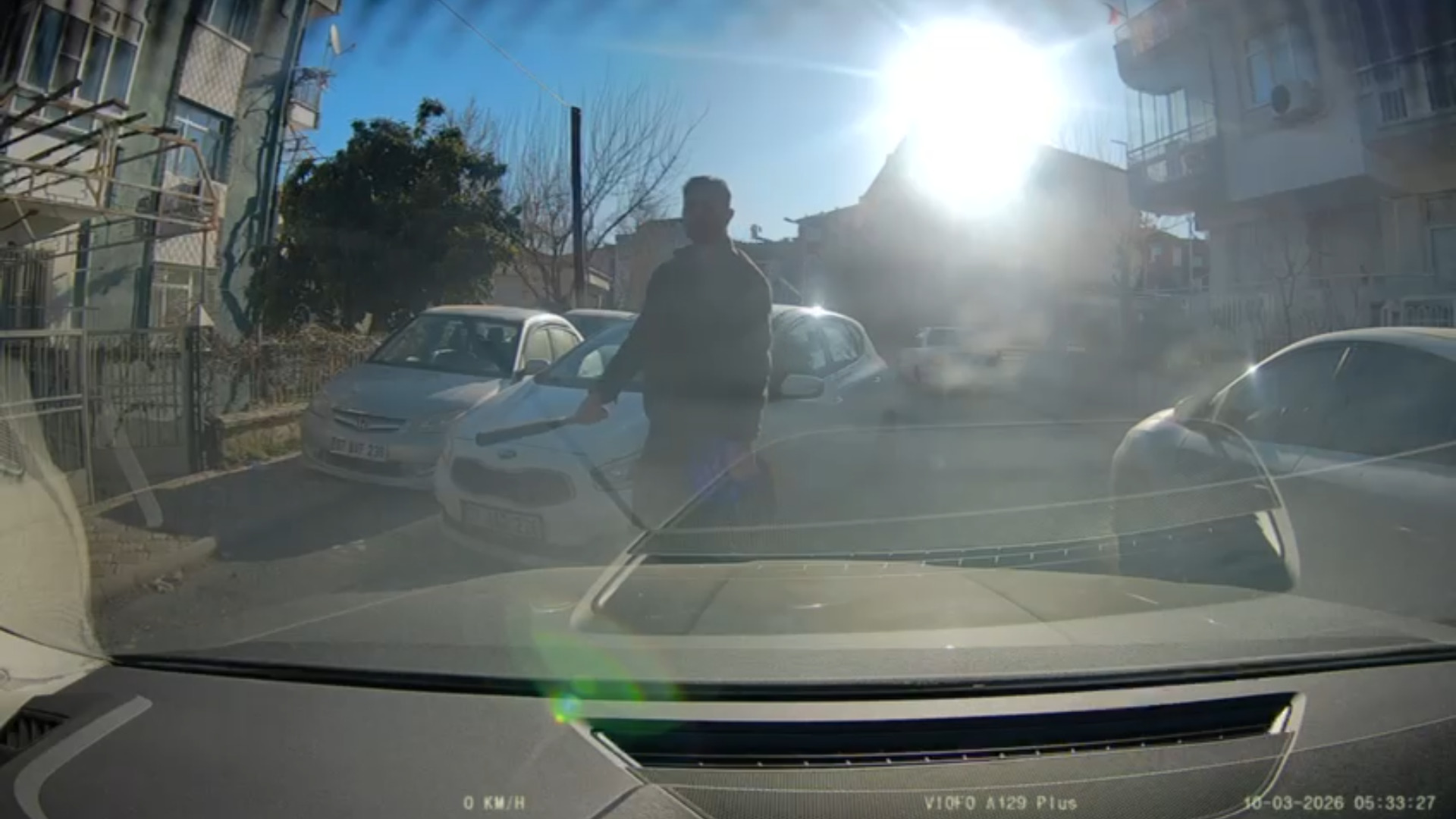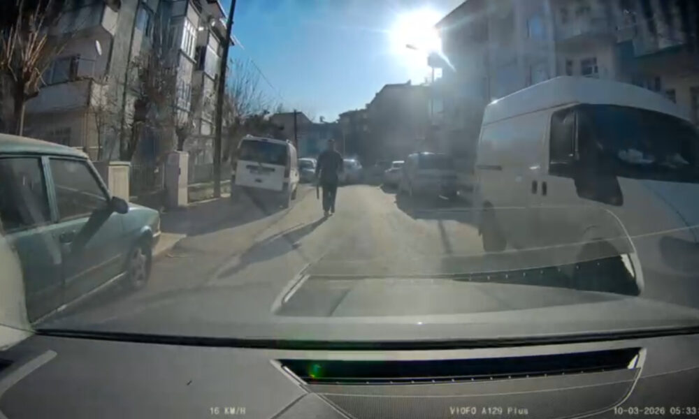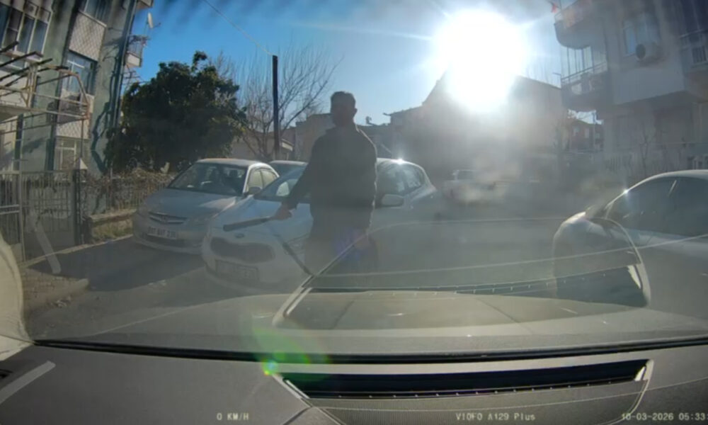Olay, önceki gün sabah saatlerinde Yeşilyurt ilçesi Koyunoğlu Mahallesinde meydana geldi. Plakaları öğrenilemeyen otomobillerin sürücüleri F.E. ve İ.Y. trafikte yol verme meselesinden tartıştı. İ.Y., yolu keserek aracından inip sopayla F.E.’nin otomobiline zarar vererek tehdit etti. F.E., geri manevrayla olay yerinden uzaklaşmaya çalışırken, İ.Y. ise elinde sopa ile aracı kovaladı. Ardından İ.Y., otomobiline binerek F.E.nin aracına çarptı. Olay anı araç kamerasına yansıdı.