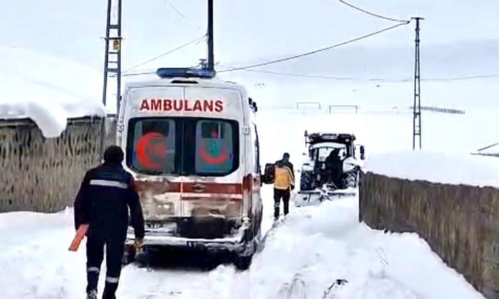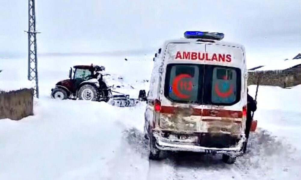 Hacıveli Köyü’nde rahatsızlanan bir vatandaş için ambulans istendi. Ambulans, kar ve tipinin etkisiyle daralan yolda ilerlemekte zorlandı. Köylüler traktörle yolu genişleterek ambulansın geçişini sağladı. Sağlık görevlileri, evine ulaşarak müdahalede bulundukları hasta vatandaşı, hastaneye götürdü.