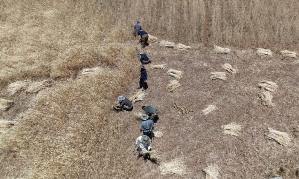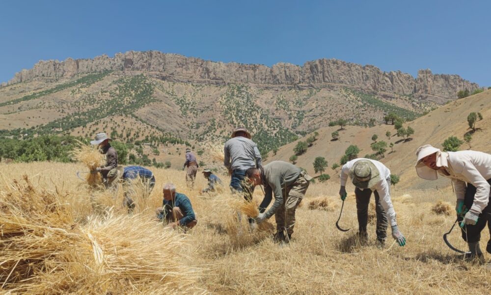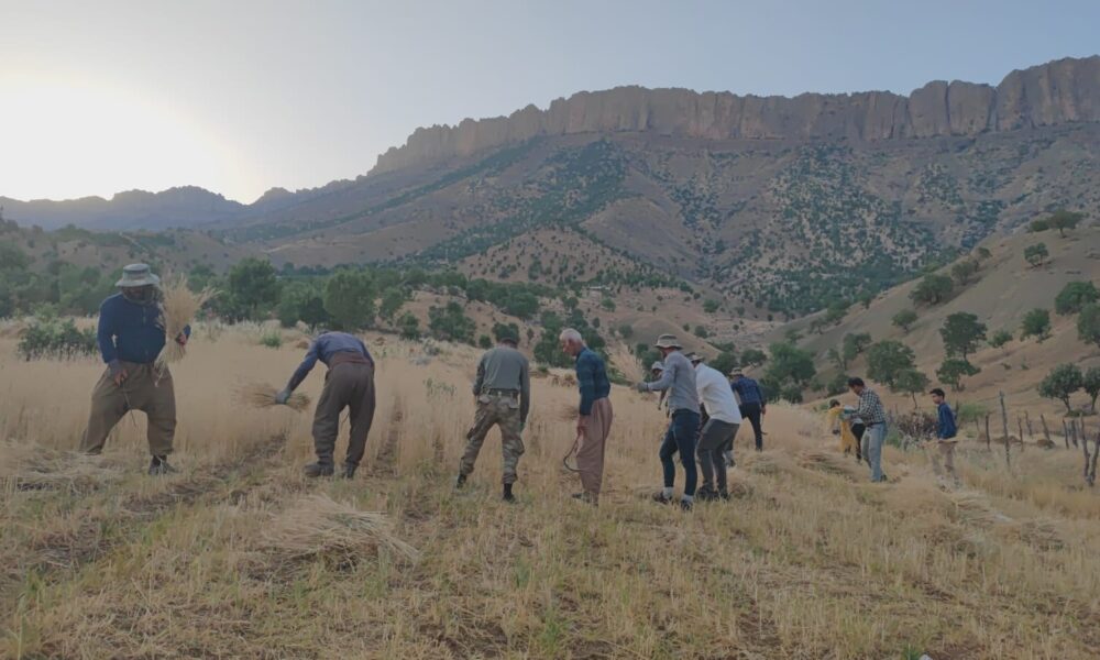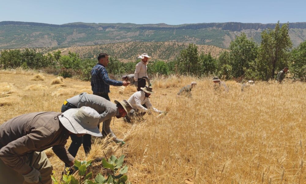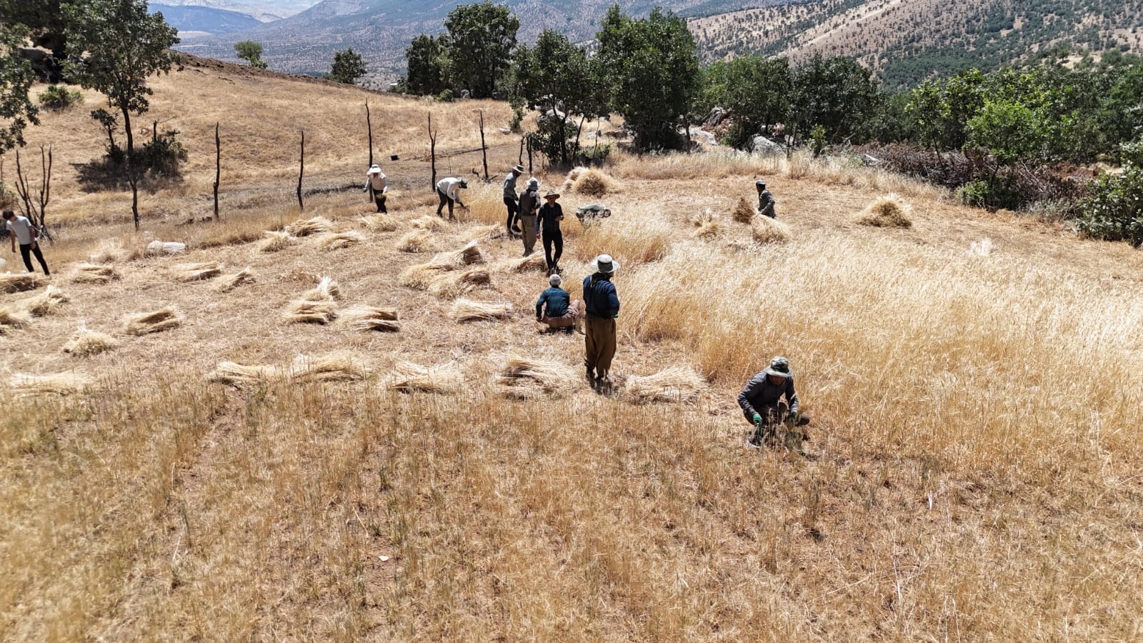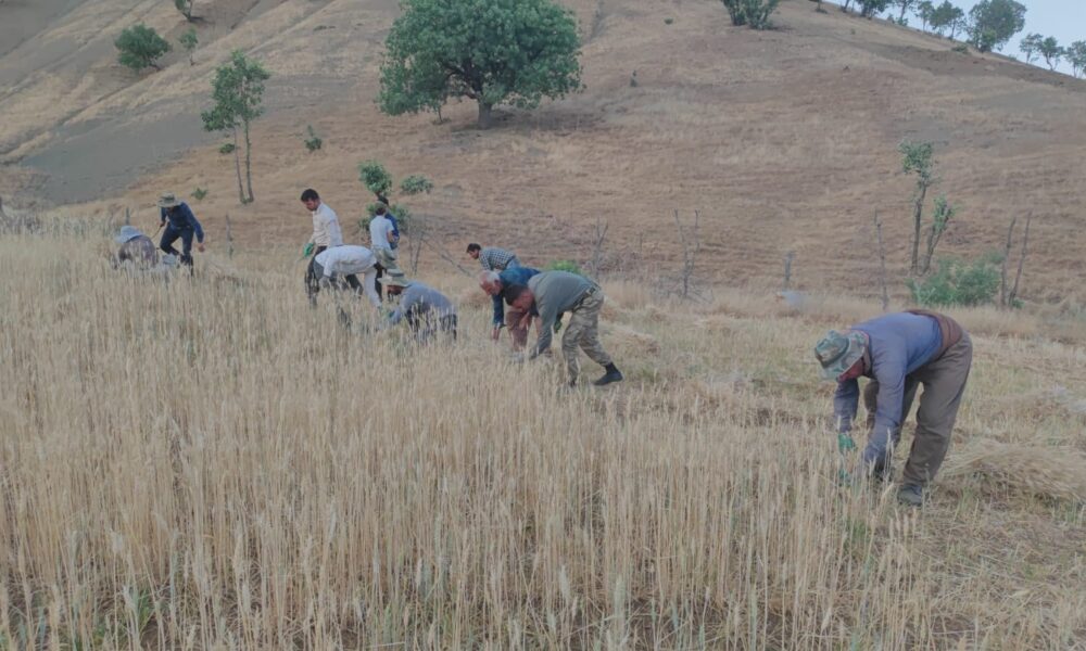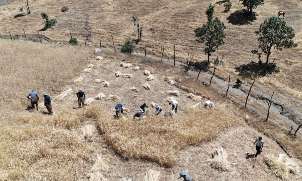 İlçe merkezine 10 kilometre uzaklıktaki Balkaya Dağları eteklerindeki Akdemir köyünde yaşayan çiftçiler, her gün sabahın ilk ışıklarıyla, tarlalarına gidip buğday hasadı yapıyorlar. Engebeli araziler nedeniyle iş makinelerinin kullanılamadığı bölgede yaşayanlar, yaklaşık 1 asırdır imece usulü, orakla hasat yaptıklarını ve her hafta bölgedeki 1 köyün buğdayını biçtiklerini anlattı. Buğday ekili tarlayı 10 kişinin gün boyu çalışarak ortalama 3 günde biçtiğini söyleyen Servan Kaya, “Dağlık kesimde olan ekinleri, imece usulü ile orakla biçmek zorundayız. Arazi engebeli olduğu için traktörle biçemiyoruz. Güneşin altında saatlerce orak sallamak bizleri çok yoruyor. Bugün köyde buğday biçme sırası bendeydi. Arazim engebeli olduğu zorlu bir çalışma yapıyoruz. Köyümüz 20 hane, 15 gün boyunca yardımlaşarak ekilen bütün buğdayları biçeceğiz. 38 derece hava sıcaklığı olduğu için de çok yorulduk” dedi.