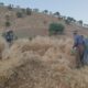 Traktörle gidilemeyen tarlalardaki buğdaylar orakla biçiliyor
