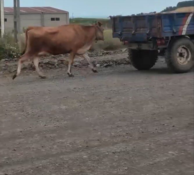 Olay, dün İlkadım ilçesi Toybelen Mahallesinde meydana geldi. Kimliği henüz belirlenemeyen kişi, hareket halindeki traktörünün arkasına iple bağladığı ineği yolda sürükleyerek götürdü. İneğin zaman zaman yürümekte zorlandığı görülürken, diğer sürücüler duruma tepki gösterdi. O anlar, cep telefonu kamerası ile görüntülendi.