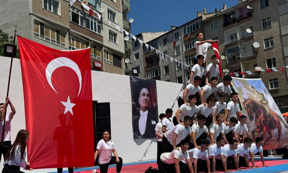 Tekirdağ'ın Çorlu ilçesinde19 Mayıs Atatürk'ü Anma Gençlik ve Spor Bayramı kutlamaları, amfi tiyatroda öğrencilerin gösterileriyle gerçekleştirildi. Fotoğraf: Mehmet YİRUN/Tekirdağ, (DHA)