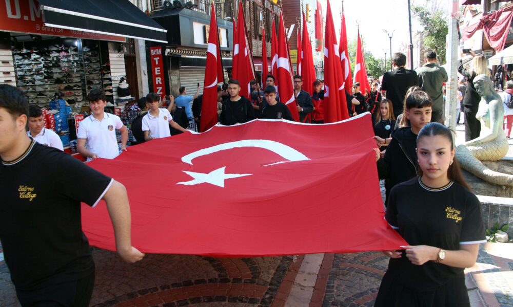 Edirne'de 19 Mayıs Atatürk'ü Anma Gençlik ve Spor Bayramı kutlamaları kapsamında yürüyüş yapıldı. Fotoğraf: Olgay GÜLER/Edirne, (DHA)
