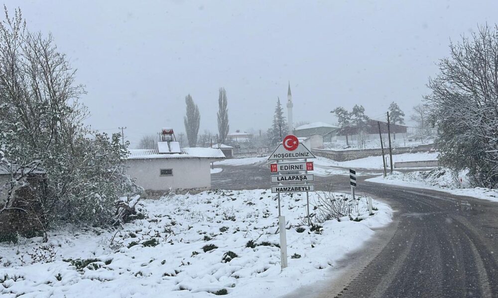 • Trakya'nın yüksek kesimlerinde sabah saatlerinden itibaren kar yağışı etkili oldu. Kar, Edirne'nin Lalapaşa ilçesine bağlı köyleri beyaza bürüdü. Fotoğraf: Umut IŞIK/Edirne, (DHA)