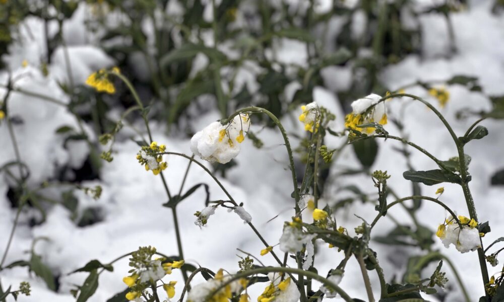 Trakya’nın ‘sarı altın çiçeği’ kanola tarlaları, nisan karıyla beyaza büründü