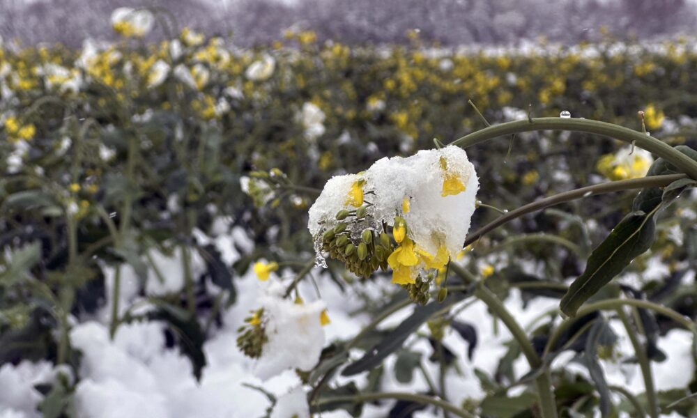Edirne Genç Çiftçiler Derneği Başkanı Egemen Ilgın, uzun yıllardır rastlanılmayan bir durumla karşılaşıldığını belirterek, “Nisan ayındayız ve Edirnenin hemen hemen her ilçesinde karlı bir hava var. Sıcaklık mevsim normallerinin 8 ile 10 derece altına düşmüş durumda. Tabii uzun yıllardır bu mevsimde, bu zamanda, bu sıcaklıklara alışkın olmadığımız için yadırgıyoruz. Bitki de canlı, buğday, arpa, kanola, ayçiçeği onlar da kendini bahara hazırlarken birden 8-10 derece bir sıcaklık düşüşü, aynı zamanda da kar yağışına maruz kaldılar. Sadece kar yağışının şu aşamada hiçbir bitkiye zararı olmaz. Kar bereket demektir ancak burada sıcaklık önemli bir hal alıyor. Eğer sıcaklıklar eksi 3 derecenin altına düşerse don riskiyle karşı karşıyayız. Bu da başta kanola olmak üzere meyve ağaçlarını, badem ağaçlarını olumsuz olarak etkileyecektir. Genel anlamda buğdaylarımızda bir sıkıntı yok. Ancak bazen sıcak iklim buğdayı dediğimiz tohumlardan ekilmeye başlanmıştı son zamanlarda, onlarda bazı sıkıntı olabilir. Yer yer yatmalar var ancak bu yatmalar kalkacaktır. Ancak yeni çıkan ayçiçeklerinde eksi 3 derecenin altına düşen sıcaklıklar ayçiçeğini olumsuz etkileyecektir. Kanolalarda çiçeklerin üzerinde kar birikintileri oluşmaya başladı. Kanolada ilk defa yaşadığımız bir durum. Kanolaları dikkatlice izliyoruz. Hiç kanolanın üzerine kar yağdığı görülmemişti. Tabii burada kanola boyu önemli. Çok boyluysa dezavantajlı olabilir. Boyu kısa olduğunda alttan yeni filizler verebilir” diye konuştu.