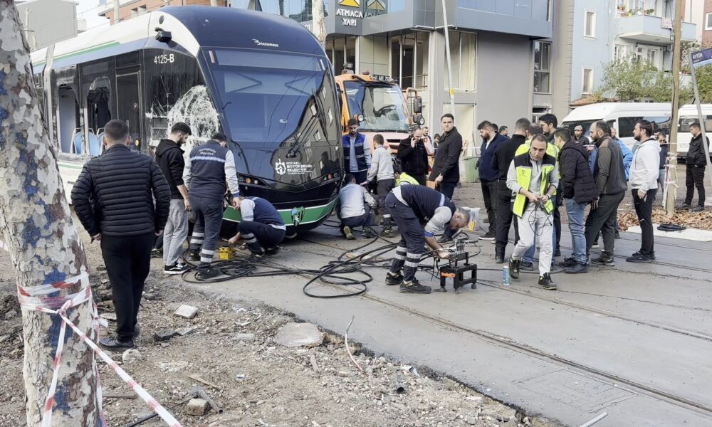 Kaza nedeniyle tramvay seferleri aksadı. Tramvayın bölgeden kaldırılması için çalışmalar sürüyor.