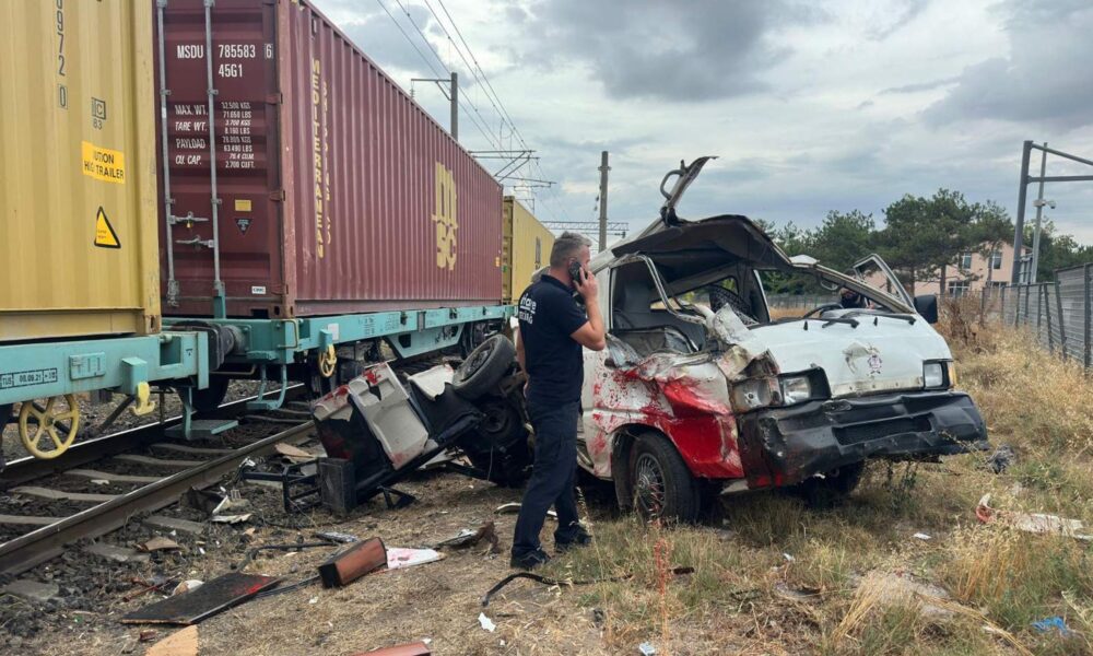 Trenin hemzemin geçitte çarptığı minibüsün sürücüsü yaralandı