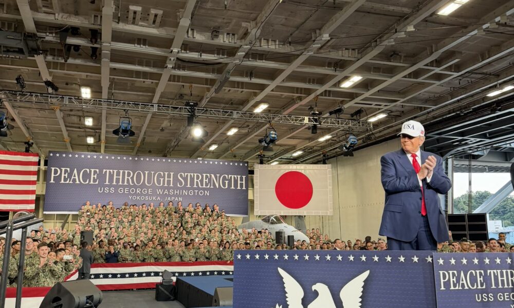 ABD Başkanı Donald Trump, Japonyanın Yokosuka kentindeki donanma üssünde demirli USS George Washington uçak gemisini ziyaret etti. Trump, burada yaptığı konuşmada, Japonyanın Öz Savunma Kuvvetleri’ne F-35 savaş uçakları için teslim edilecek füzelerin ilk partisini onayladığını ve teslimatın bu hafta yapılacağını açıkladı.