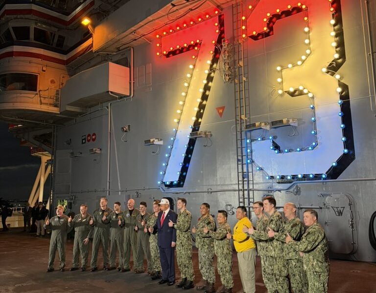 – Trumpın, USS George Washington uçak gemisini ziyaretinden görüntüler.