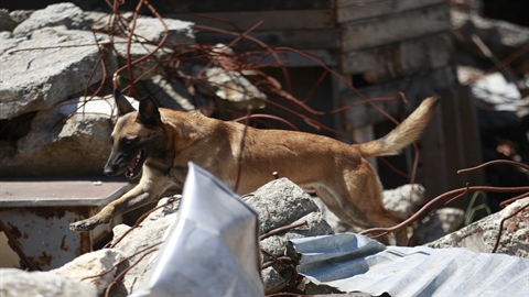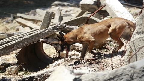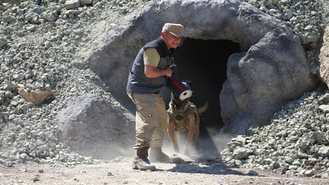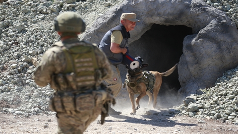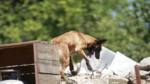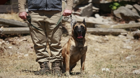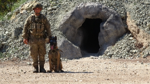 UKKS, Gemlik’teki Köpek Üretim ve Eğitim Tabur Komutanlığı'nda üretilen ve eğitilen, Belçika Malinois cinsi 3 yaşındaki keşif köpeği ‘Parka’ (Fotoğrafta) tarafından eğitim alanında test edildi. Kullanıcısının kontrolünde, eğitim alanındaki mağaraya giren