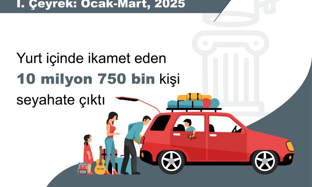 TÜİK, 2025 yılının ilk çeyreğine ilişkin hanehalkı yurt içi turizm istatistiklerini açıkladı. Buna göre; ocak, şubat, mart aylarından oluşan ilk çeyrekte, yurt içinde ikamet eden 10 milyon 750 bin kişi seyahate çıktı. Seyahate çıkanların bir ve daha fazla geceleme kaydı ile ülke içinde yaptıkları toplam seyahat sayısı bir önceki yılın aynı çeyreğine göre yüzde 28,4 artarak 12 milyon 653 bin seyahat olarak gerçekleşti. Bu çeyrekte seyahate çıkanlar 85 milyon 317 bin geceleme yaptı. Ortalama geceleme sayısı 6,7 gece oldu. Yerli turistlerin, yurt içinde yaptıkları seyahat harcamaları 2025 yılının 1inci çeyreğinde bir önceki yılın aynı çeyreğine göre yüzde 68,9 artarak 76 milyar 429 milyon 290 bin TL olarak gerçekleşti. Bu harcamaların yüzde 93,5ini 71 milyar 457 milyon 499 bin TL ile kişisel harcamalar, yüzde 6,5ini ise 4 milyar 971 milyon 791 bin TL ile paket tur harcamaları oluşturdu. Seyahat başına yapılan ortalama harcama ise 6 bin 40 TL oldu.