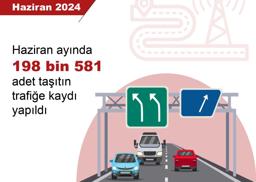 Ayrıca; haziran ayında trafiğe kaydı yapılan taşıtların yüzde 50,2si motosiklet, yüzde 38,1i otomobil, yüzde 6,7si kamyonet, yüzde 3,1i traktör, yüzde 1,2si kamyon, yüzde 0,4ü minibüs, yüzde 0,2si otobüs ve yüzde 0,1ini özel amaçlı taşıtlardan oluştu. Haziran sonu itibarıyla trafiğe kayıtlı taşıtların da yüzde 52,5ini otomobil, yüzde 18,8ini motosiklet, yüzde 15,3ünü kamyonet, yüzde 7,4ünü traktör, yüzde 3,3ünü kamyon, yüzde 1,7sini minibüs, yüzde 0,7sini otobüs ve yüzde 0,3ünü özel amaçlı taşıtlar oluşturdu.