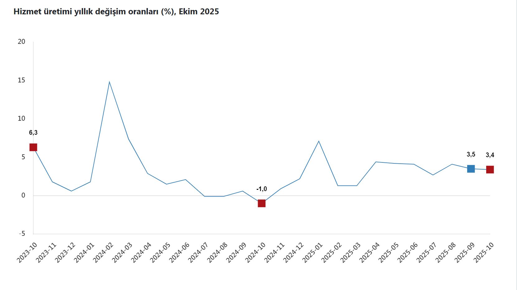 TÜİK: Hizmet üretim endeksi ekimde yıllık yüzde 3,4 arttı