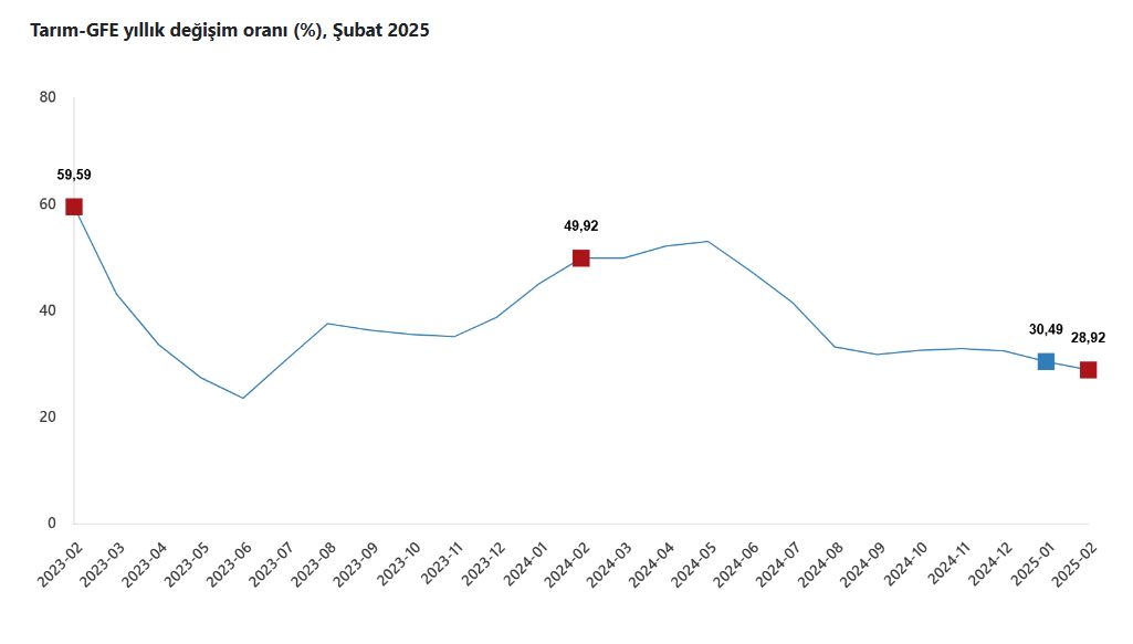 TÜİK, Şubat 2025 dönemine ilişkin tarımsal girdi fiyat endeksi verilerini açıkladı. Buna göre; tarımsal girdi fiyatları bir önceki aya göre yüzde 2,35, bir önceki yılın aynı ayına göre yüzde 28,92 ve 12 aylık ortalamalara göre yüzde 37,78 arttı.