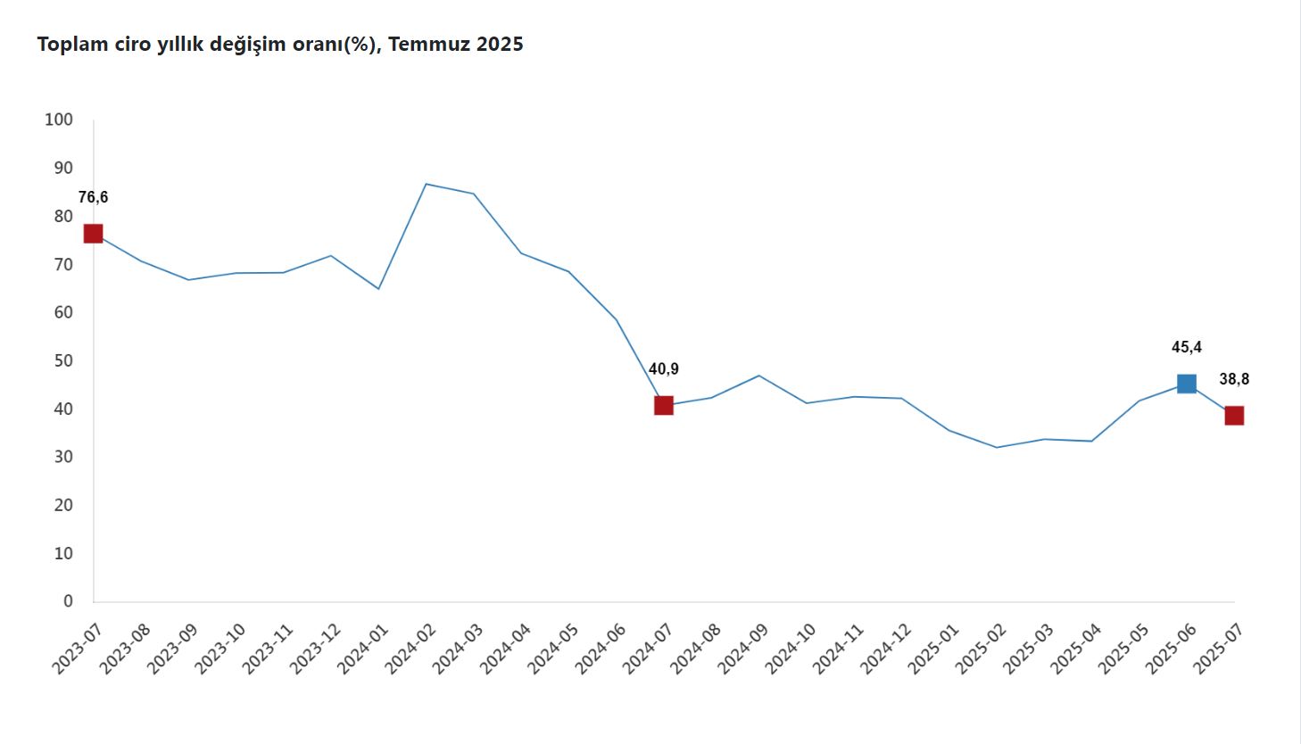 TÜİK: Temmuzda toplam ciro yıllık yüzde 38,8 arttı