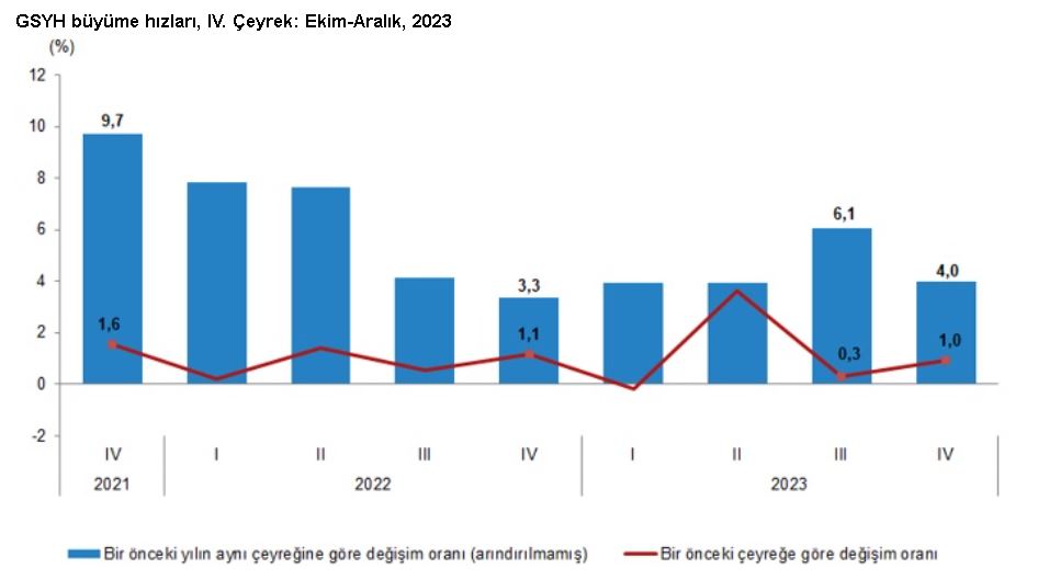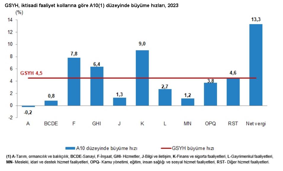 TÜİK: Türkiye ekonomisi 2023’te yüzde 4,5 büyüdü