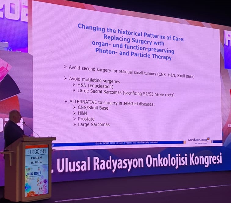 RADYASYON Onkolojisi alanında dünyanın en başarılı isimleri arasında sayılan Avusturya MedAustron İyon Terapi Merkezi Genel Direktörü Prof. Dr. Eugen Hug, yüksek enerjili proton parçacıklarıyla sağlıklı dokulara neredeyse hiç dokunmadan, direkt tümörü yok eden “proton terapi”nin, tıbbın çaresiz kaldığı en zor bölgedeki tümörlerde dahi hayat kurtardığını ve özellikle çocuk hastalarda çok başarılı sonuçlar verdiğini söyledi.Prof. Dr. Gökhan Özyiğit ise Türkiye’de de bir an önce bir proton terapi merkezi kurulması gerektiğini kaydederek “Örneğin melanoma dediğimiz cilt tümörlerinde hem tümörün kendisi, hem de yayıldığı yerleri ışınlayarak biyolojik ajanları da tedaviye eklediğimizde, hastada tam iyileşmeye ulaşabiliyoruz. 10 yıl önce bunu hayal bile edemezdik” dedi.
