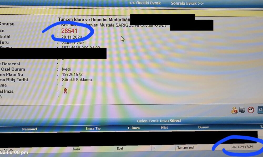 Tunceli Valiliği’nden yapılan yazılı açıklamada, ilgili yazının mahkemenin sona ermesinin ardından 17.24’te gönderildiği belirtilerek, “Bazı haber sitelerinde çıkan asılsız habere ilişkin basın açıklamasıdır. Tunceli Ağır Ceza Mahkemesinden Tunceli ve Ovacık Belediye Başkanlarının davasıyla ilgili bilgi alma yazısı mahkeme devam ederken değil, mahkeme bitiş saati olan 13:20’den saatler sonra, saat 17:24te imzalanmış ve adliyeye gönderilmiştir. Söz konusu haberler maksatlı olup, gerçeği yansıtmamaktadır. İlgili evraka ilişkin sistem kaydı ilişikte sunulmuştur. Kamuoyuna saygıyla sunulur” denildi.