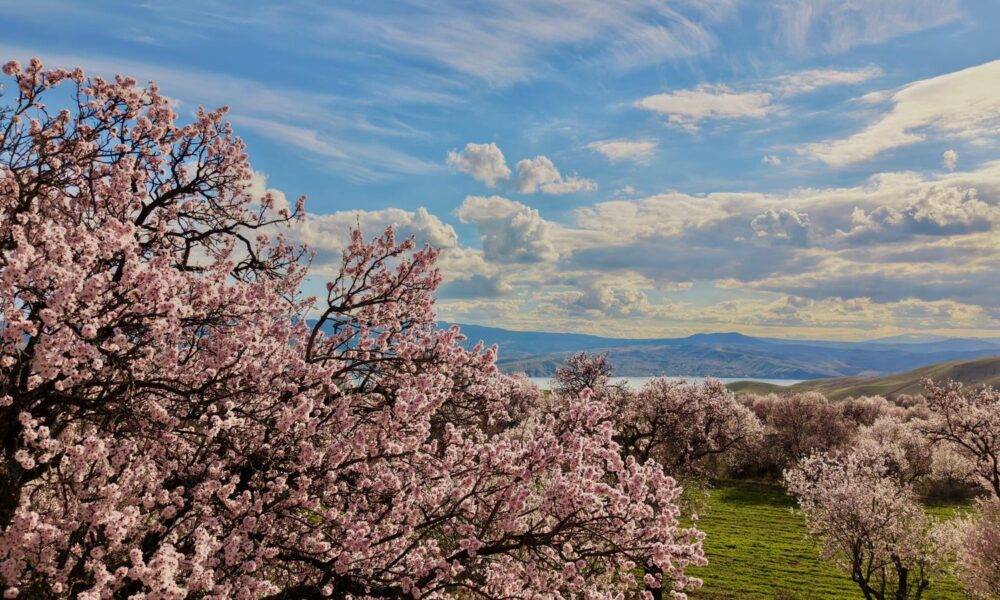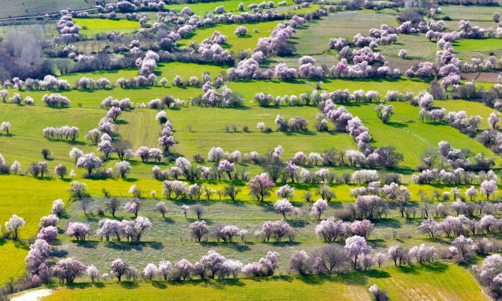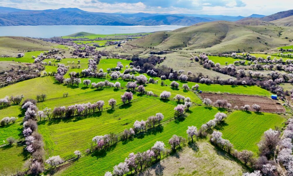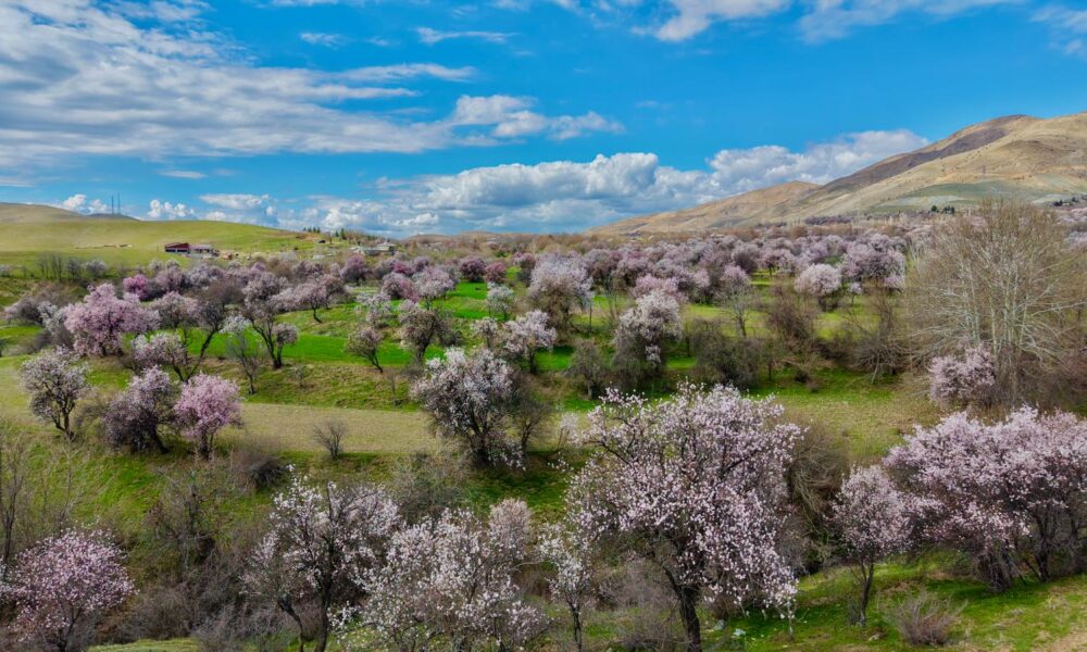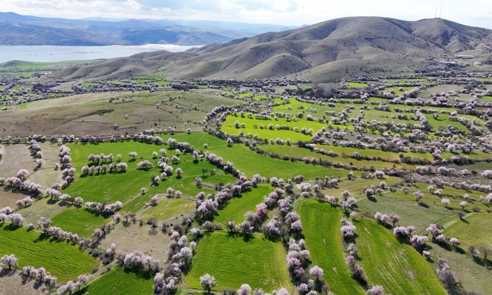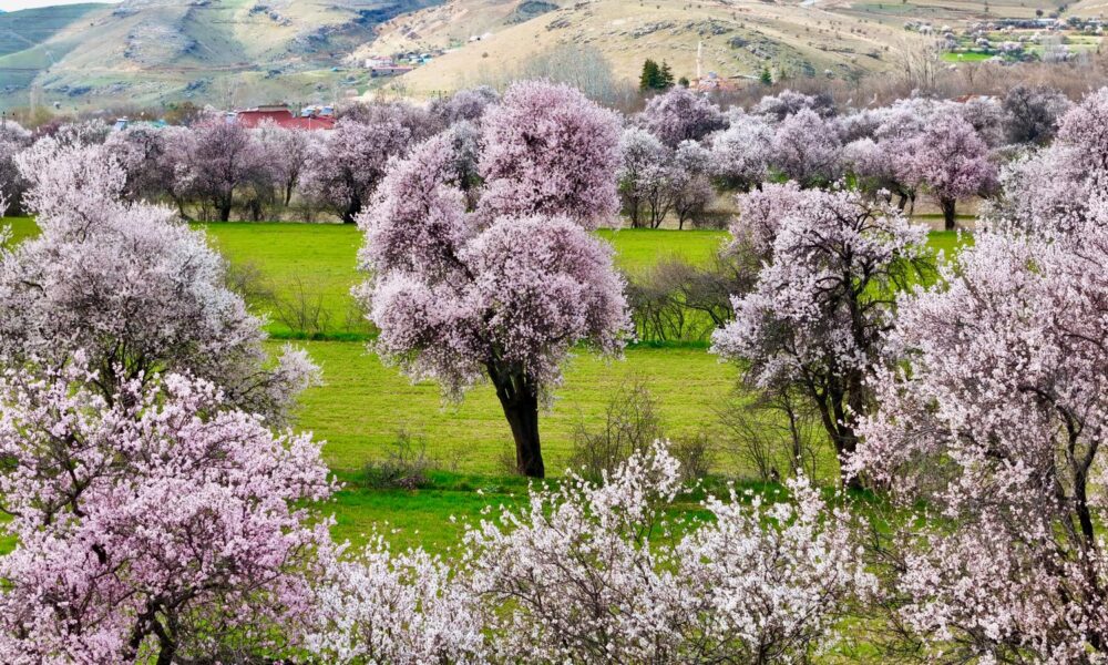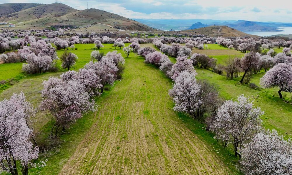 Tunceli’de badem ağaçları çiçek açtı; manzara dron ile görüntülendi