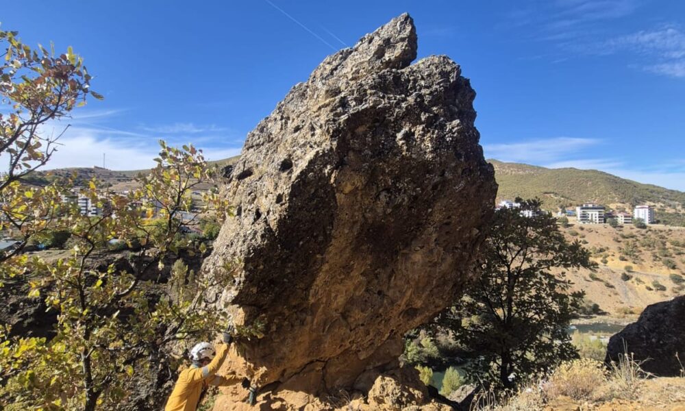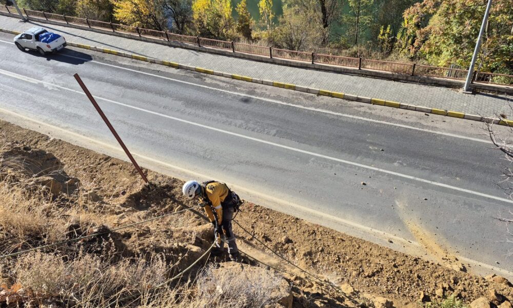 Tunceli ile Ovacık ilçesi arasındaki, geçtiğimiz yıl 3 kişinin yaşamını yitirdiği kara yolunda, kaya düşmelerine karşın sürücü ve yaya güvenliğini artırmak amacıyla çalışma başlatıldı. Vali Şefik Aygöl’ün talimatıyla karayolları ekiplerince yürütülen çalışmada, 5 bin metrekarelik alanda askıdaki kayaların kontrollü olarak düşürülmesine başlandı. Yol kenarında 600 metre uzunluğunda duvar üzerine çelik bariyer imalatı sürerken, güzergah çalışma süresince trafiğe kapatıldı. Kayaların düşme anı ise cep telefonu kamerasıyla kaydedildi.