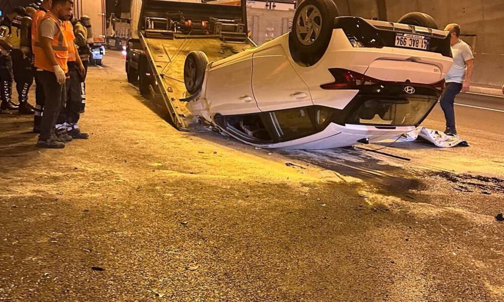 Tünelde kamyonetle çarpışan otomobil takla attı; sürücü yaralandı