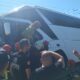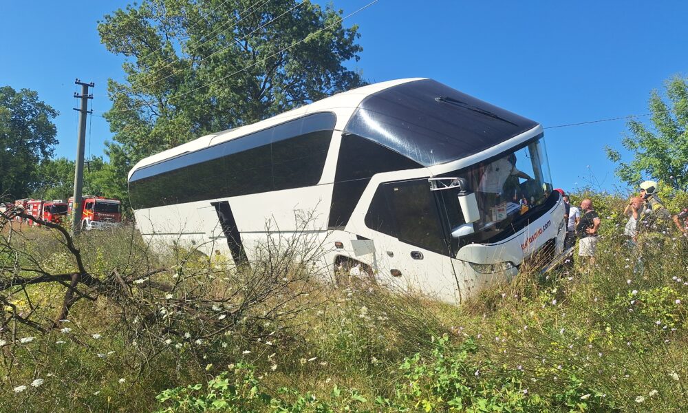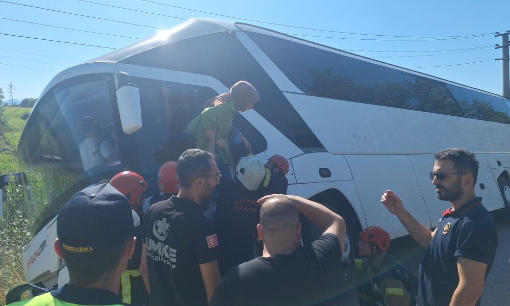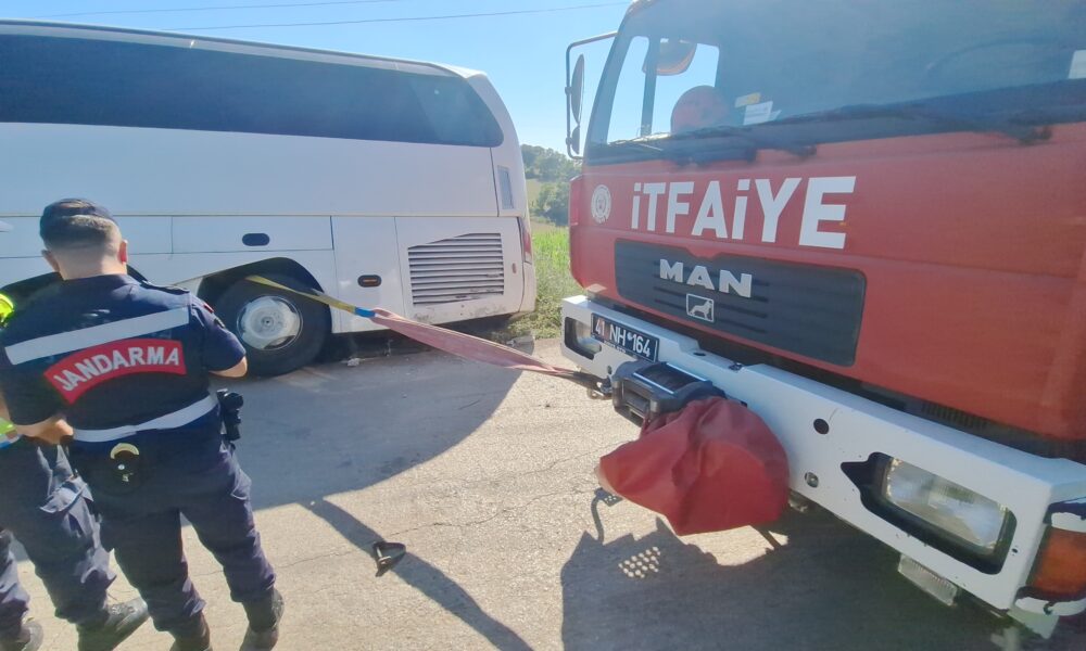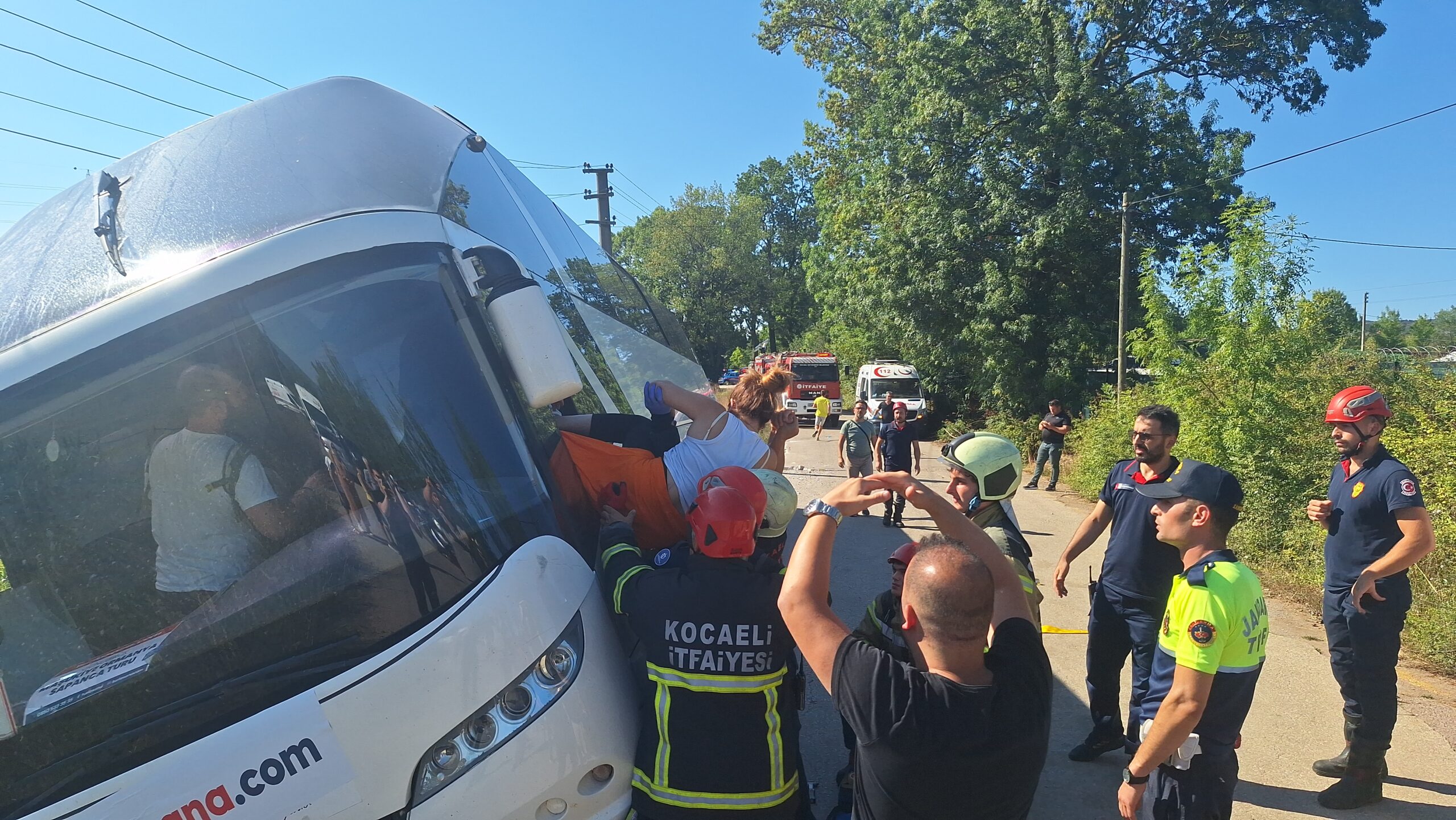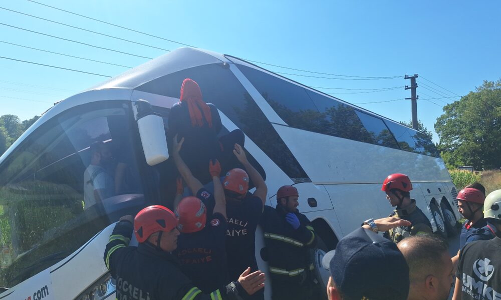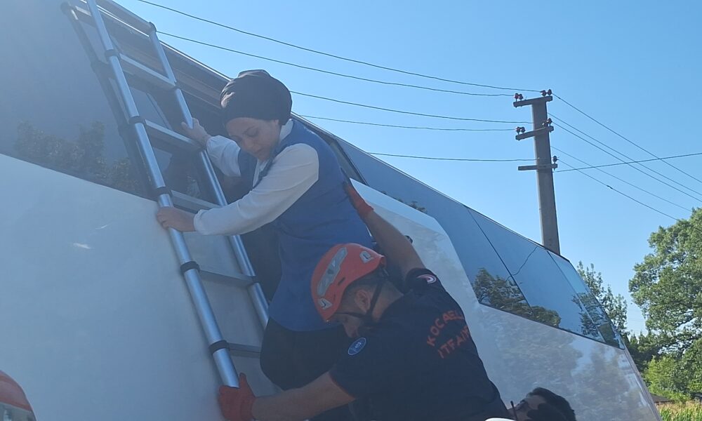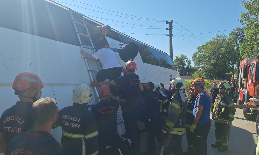 Tur otobüsü yan yattı, 43 kişi itfaiye tarafından tahliye edildi