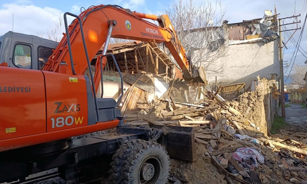 Sabah saatlerinde Turgutlu Belediyesine bağlı iş makineleri olay yerine gelerek enkaz kaldırma çalışmalarına başladı.