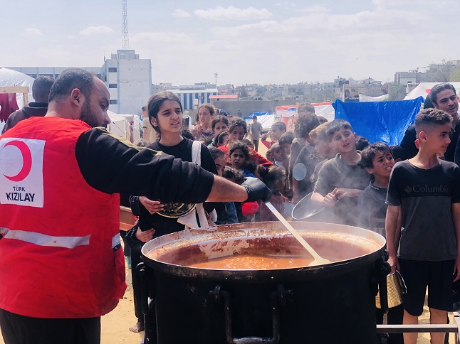 “Türkiye’nin Filistin İnsani Yardım Operasyonu kapsamında bölgeye 50 bin tonu aşkın malzemenin hava, deniz ve karayoluyla sevkiyatında aktif rol alan Türk Kızılay, AFAD koordinasyonunda ve STK’ların desteğiyle Mersin Limanı’ndan Mısır’ın El Ariş Limanı’na uğurladığı 11 İyilik Gemisi’yle başta gıda, barınma, hijyen ve tıbbi ihtiyaçlar olmak üzere bölgedeki en temel insani ihtiyaçların karşılanmasına katkı sağladı. İyilik Gemileri’yle bölgeye 900 tırlık kapsamlı malzeme gönderen Türk Kızılay, yardımların yüzde 70’ten fazlasının Gazze Şeridi’ne girişini sağladı. 7 Ekim’den bu yana önce Refah’ta, ardından Deyr Belah’ta hizmet veren aşeviyle Kızılay, günde 15 bin kişinin sıcak yemek ihtiyacını karşılamaya devam ediyor.