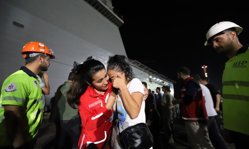 Lübnan’dan ayrılmak üzere başvuran Türk vatandaşlarının tahliyesini sağlayan Türk Deniz Kuvvetleri’ne ait iki gemi Mersin Limanı’na ulaştı. Dışişleri Bakanlığı ve Milli Savuma Bakanlığı koordinasyonuyla yürütülen operasyon kapsamında Beyrut Limanı’ndan hareket eden TCG Bayraktar 558 yolcuyu, TCG Sancaktar ise 378 yolcuyu Türkiyeye getirdi. Tahliyesi sağlanan kişilere her iki gemide görevlendirdiği personelle beslenme desteği veren Kızılay, Mersin Limanı’na ulaşan vatandaşlara pasaport kontrolü öncesi sıcak yemek servisi hizmeti verirken ikram araçlarıyla sıcak ve soğuk içecek ile atıştırmalık ürünler sundu.