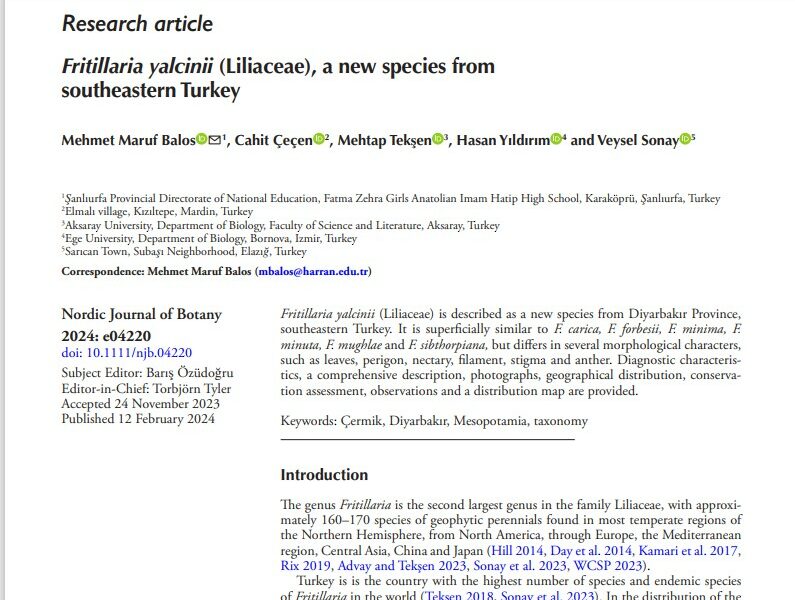 DİYARBAKIRLI doğasever öğretmen Muhammed Yalçın’ın Çermik ilçesindeki Gelincik Dağında yaptığı doğa yürüyüşünde keşfedip fotoğrafladığı ters lalelerin, bugüne kadar tanımlanmamış olduğu tespit edildi. Lalelerin Türkiye’de yetişen 53’üncü tür olduğunun tespitinin ardından, botanik dergisi Nordic Journal Of Botany’de bilimsel makale yazıldı. Lalelere, Muhammed Yalçın’ın soyadıyla ‘Fritillaria Yalcinii’, ismi verildi.Diyarbakırlı doğasever öğretmen Muhammed Yalçın, iki arkadaşıyla 9 Nisan 2023’te Çermik ilçesindeki Gelincik Dağı’nda çıktığı doğa yürüyüşünde, ters lalelerin yetiştiği alanı fark edip, çektiği fotoğrafları Doç. Dr. Mehmet Maruf Balos’a ulaştırdı. Doç. Dr. Balos ile Aksaray Üniversitesi Biyoloji Bölümü Öğretim Üyesi Prof. Dr. Mehtap Tekşen ve Ege Üniversitesi Biyoloji Bölümü Öğretim Üyesi Prof. Dr. Hasan Yıldırım ilçede saha çalışmaları yaparak, lalelerin bugüne kadar tanımlanmamış olduğunu tespit etti. Tespitin ardından botanik dergisi Nordic Journal Of Botany’de bilimsel makale yazıldı. Lalelere, Muhammed Yalçın’ın soyadıyla ‘Fritillaria Yalcinii’, ismi verildi. Türkiye’nin bir ters lale cenneti olduğunu belirten Prof. Dr. Hasan Yıldırım, “Diyarbakır’ın Çermik ilçesinde bilim dünyasına tanıttığımız ‘Fritillaria Yalcinii’, Türkçe ismiyle de ‘Çermik Lalesi’, bir öğretmenin Diyarbakır kırsalında yaptığı doğa gezisi sırasında bulundu. İlk olarak Doç. Dr. Maruf Balos’a ve ekip arkadaşlarına ulaştırıldı. Yapılan saha çalışmaları sonucunda konu uzmanı Prof. Dr. Mehtap Tekşen ve bizlerle beraber bu bitki üzerine yaptığımız bilimsel çalışmalar sonucunda, bu bitkinin şu ana kadar dünyada tanımlanmamış bir ters lale olduğu sonucuna vararak, Nordic Journal Of Botany dergisine bunun makalesini yazarak bu bitkinin bilim dünyasına tanıtılmasını sağladık” dedi.‘TÜRKİYEDE YETİŞEN 53’ÜNCÜ TÜR’Bulunan yeni türün Türkiye’de yetişen 53’üncü tür olduğunu belirten Prof. Dr. Yıldırım, “Ters laleler dünyada yaklaşık 170 kadar türle temsil edilmekle olup ülkemizde bu türle birlikte 53’üncü tür ortaya konulmuş oldu ve bunlardan 30 tanesi dünyada sadece ülkemizde bulunan endemik türlerdendir. Ülkemiz dünyadaki en fazla ters lale türünü içeren ülkedir. Bize en yakın olarak Yunanistan’daki sayıya baktığımız zaman 26 kadar tür bulunduğunu görüyoruz. Bu bakımdan genel olarak ters lalelerin çeşitlenme ve gen merkezinin ülkemiz olduğunu söyleyebiliriz” diye konuştu.‘YENİ BİR TÜR OLDUĞUNU ÖĞRENİNCE ÇOK SEVİNDİM’Doğasever Muhammed Yalçın da keşfettiği ters laleye soyadının verilmesini sevinçle karşıladığını ifade ederek, şöyle konuştu:“Hafta sonları düzenli bir şekilde doğa yürüyüşlerine katılıyorum. Arkadaşlarla Çermik’te Gelincik Dağı’nda yaptığımız bir doğa yürüyüşünde kayalıkların dibinde bir ters lale popülasyonu dikkatimi çekti. Bunların kayıtlarını aldım, fotoğraflarını çektim. Eve geldikten sonra zaman zaman danıştığım Doç. Dr. Mehmet Maruf Balos’a bunun türünü sordum. Kendisi bana dönüş sağladığında bunun yeni bir tür olabileceğini söyledi. Bunun üzerine çalışmalar yapıldı, makale yazıldı. Uluslararası bir dergide bunun yeni bir tür olduğu yayımlandı. Bunu keşfeden biri olarak hocalarım ismini bana ithafen ‘Fritillaria Yalcinii’ koydular. Türkçe isim olarak da ‘Çermik Lalesi’ ismi verildi. Benim soğanlı bitkilere bir ilgim vardı. Sürekli çekiyordum ve bunların türünü merak ediyordum. Eve geldikten sonra bunların türünü araştırıyordum. Yeni bir tür olabileceği pek aklıma gelmedi. Ama farklı gelmişti bana. Yeni bir tür olduğunu öğrenince çok sevindim, çok mutlu oldum. İsminin de keşfedenin verilmesi ayrıca beni mutlu etti. Çok nadir ve endemik bir türdür. Popülasyonu çok az, dar bir alanda yetişiyor. Bunun korunması lazım. Bu ters laleyi koparmanın cezası 387 bin 142 Türk Lirasıdır. Bunu da göz önünde bulunduralım. Çiçekler yerinde güzeldir. Canlıları koruyalım. Özellikle biz doğa yürüyüşlerinde zaman zaman görüyoruz. Avcılarla karşılaşıyoruz. Ya uzağımızdadır veya silah sesleri geliyor. Avcılık bir spor değildir, cinayettir.”