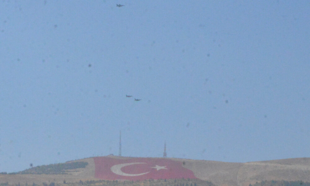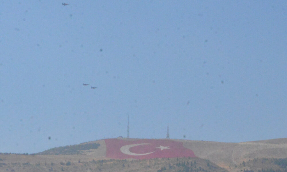 40 bin metrekarelik alana işlenerek doğaya işlenmiş en büyük Türk bayrağını ilk selamlayanlar, Türk Hava Kuvvetlerinin Savaşan Şahinler Filosu oldu. Adanada bulunan İncirlik Hava Üssünden kalkan 3 F-16 savaş uçağı, yaptığı gösteri uçuşuna dev Türk bayrağını selamlayarak başladı. Filodaki uçaklar, daha sonra Madalyalı Kavşak, EXPO, Abdülhamid Han Camisi ile merkez spor kompleksi stadyumu üzerinden uçarak halkı selamladı. Savaşan Şahinler Filosunun gösterisi ilgiyle takip edildi.