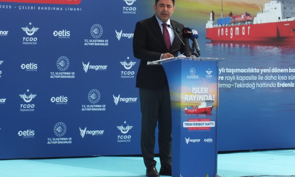 Çelebi Bandırma Limanı’nda törenle ilk seferine uğurlanan Erdeniz Tren Feribotu’nun, ulaşım süresini yüzde 60 oranında azaltacağını, böylelikle hem zamandan hem de maliyetten tasarruf sağlanacağını söyleyen Ulaştırma ve Altyapı Bakan Yardımcısı Osman Boyraz, Anadolu’dan ve Ege’den gelen vagonların Marmara Denizi’ni tren feribotu ile geçip Avrupa’ya ulaşımını sağlayacak olan Tren Ferry seferleri ile Marmara Denizi üzerinden Avrupa’ya hızlı ve güvenli ihracat yapılacağını belirtti.