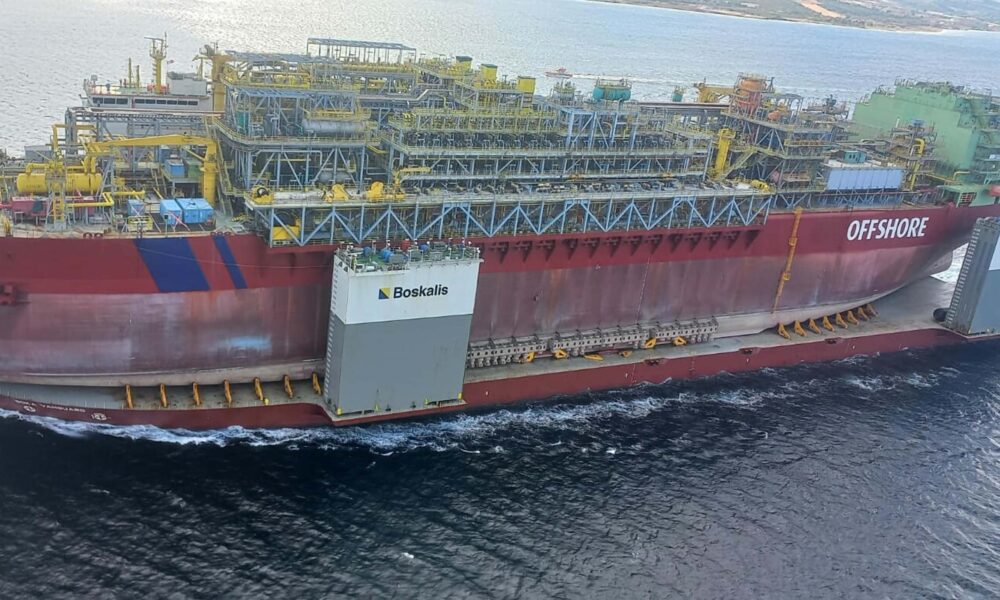 Türkiye’nin ilk yüzer üretim, depolama ve tahliye platformu (FPSO) Çanakkale’ye ulaştı. Fotoğraf: Çanakkale, (DHA)