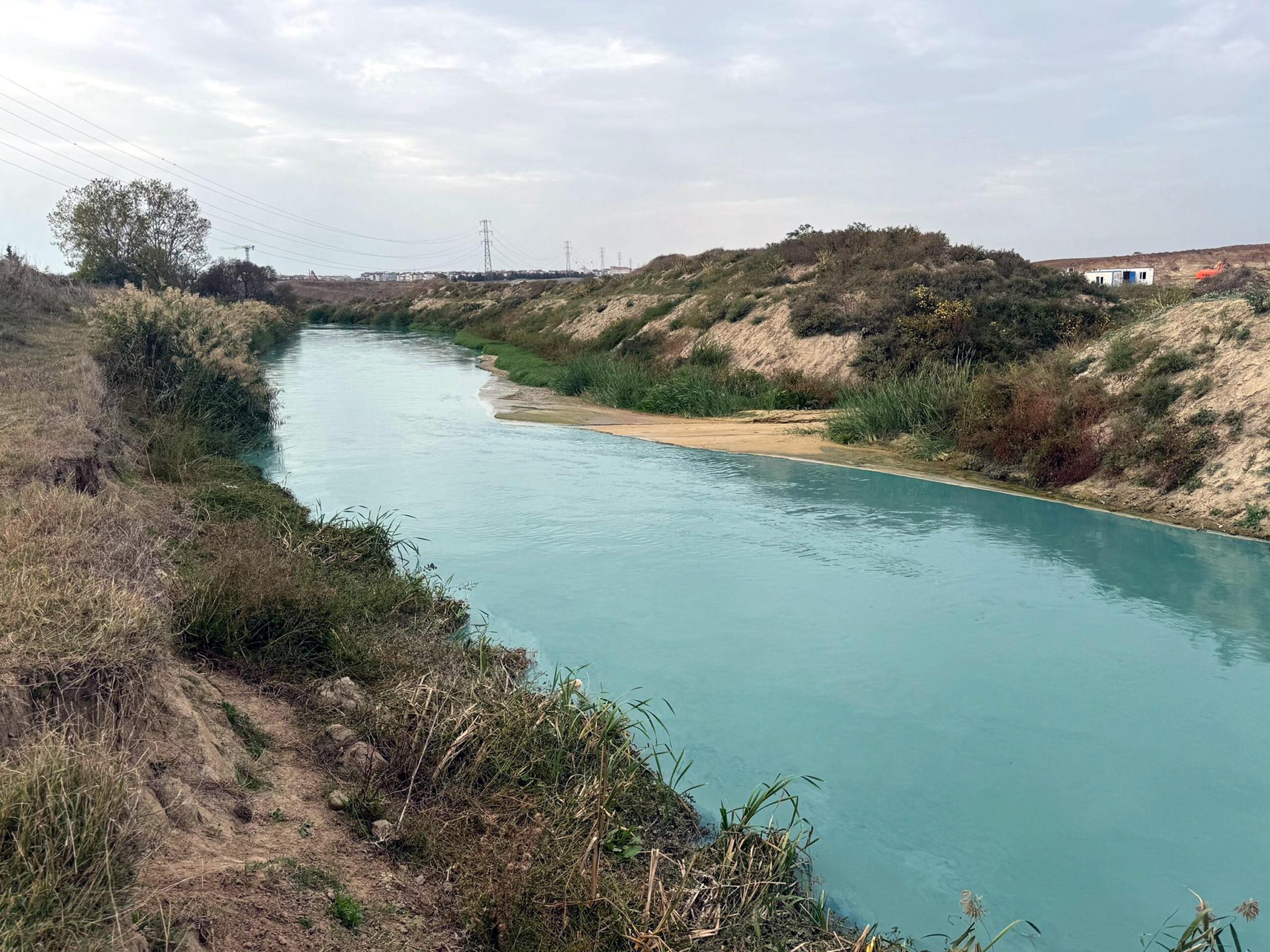 • Tekirdağ'ın Ergene ilçesinden geçen, kirliliği ile gündeme gelen ve rengi bir süreliğine turkuaz dönen Çorlu Deresi'nde inceleme başlatılıp, numune alındı. Fotoğraf: Mehmet YİRUN/Ergene(Tekirdağ), (DHA)