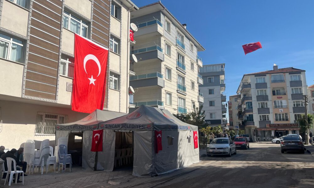 • Ankara dün TUSAŞ'a yönelik terör saldırısında şehit olan teknisyen Hasan Hüseyin Canbaz'ın babası Veli Canbaz'ın evine Türk bayrakları asıldı. Fotoğraf: Ankara, (DHA)