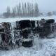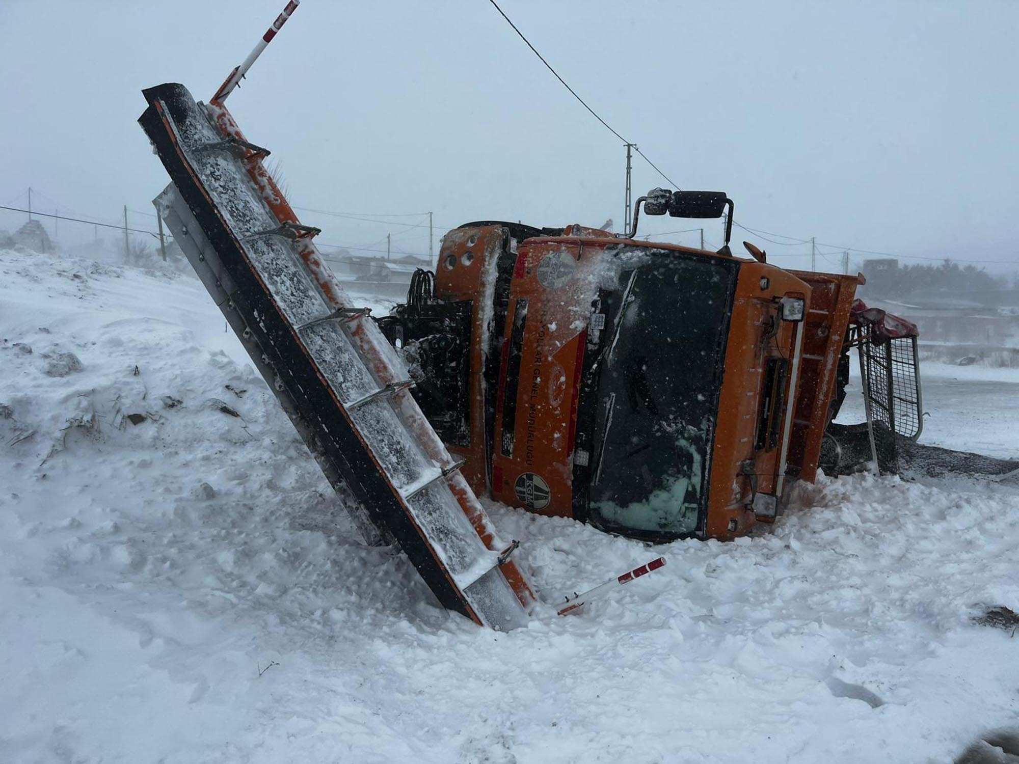 • Kars’ın Arpaçay ilçesinde Karayolları'na ait tuzlama aracı, yoldan çıkarak devrildi. Sürücü kazayı hafif sıyrıklarla atlattı. Fotoğraf: Suat İNCEDERE/Arpaçay, (Kars), (DHA)
