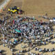 • Türkiye Ziraat Odaları Birliği Genel Başkanı Şemsi Bayraktar (fotoğrafta sağdan üçüncü), Türkiye ayçiçeği üretiminde ilk sırada yer alan, bu yıl kuraklıktan en çok etkilenen bölgeler arasında bulunan Edirne'de ayçiçek hasadına katıldı. Fotoğraf: Umut IŞIK