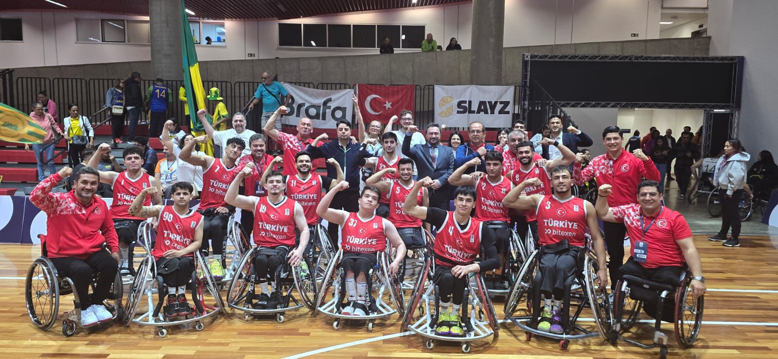 Brezilya’nın Sao Paulo kentinde oynanan IWBF U23 Dünya Şampiyonası’nda U23 Tekerlekli Sandalye Basketbol Milli Takımı A grubunun son maçında Brezilya’yı 69-34 yendi. Milli takım çeyrek finalde Amerika ile karşılaşacak. Karşılaşma bugün TSİ ile 23.45’de başlayacak. Brezilya maçını, Türkiye Cumhuriyeti Sao Paulo Başkonsolosu Özgür Uludüz, Türkiye Bedensel Engelliler Spor Federasyonu Başkan Vekili Musa Tahsin Doğan, yönetim kurulu üyeleri ve taraftarlar da izledi.